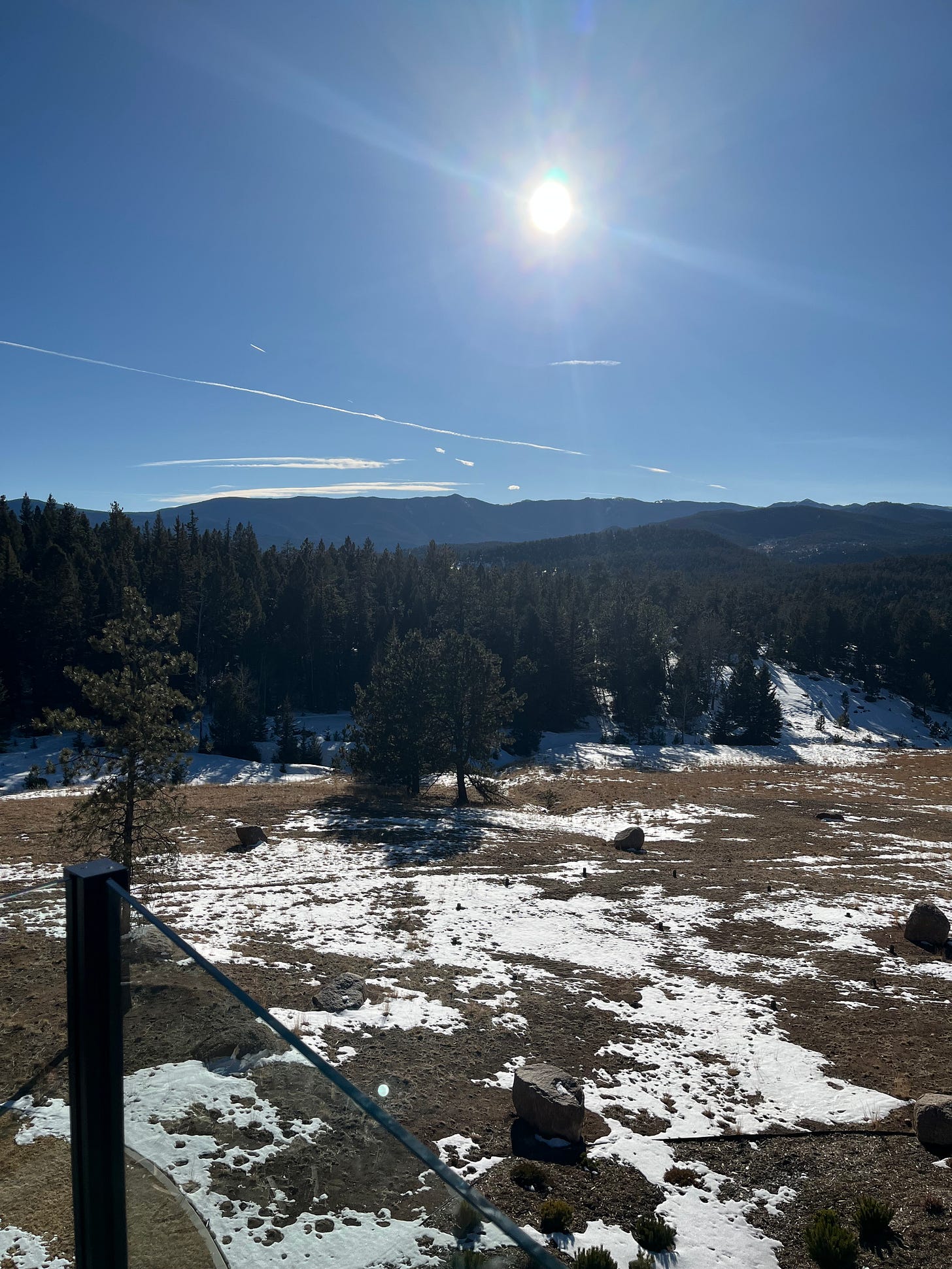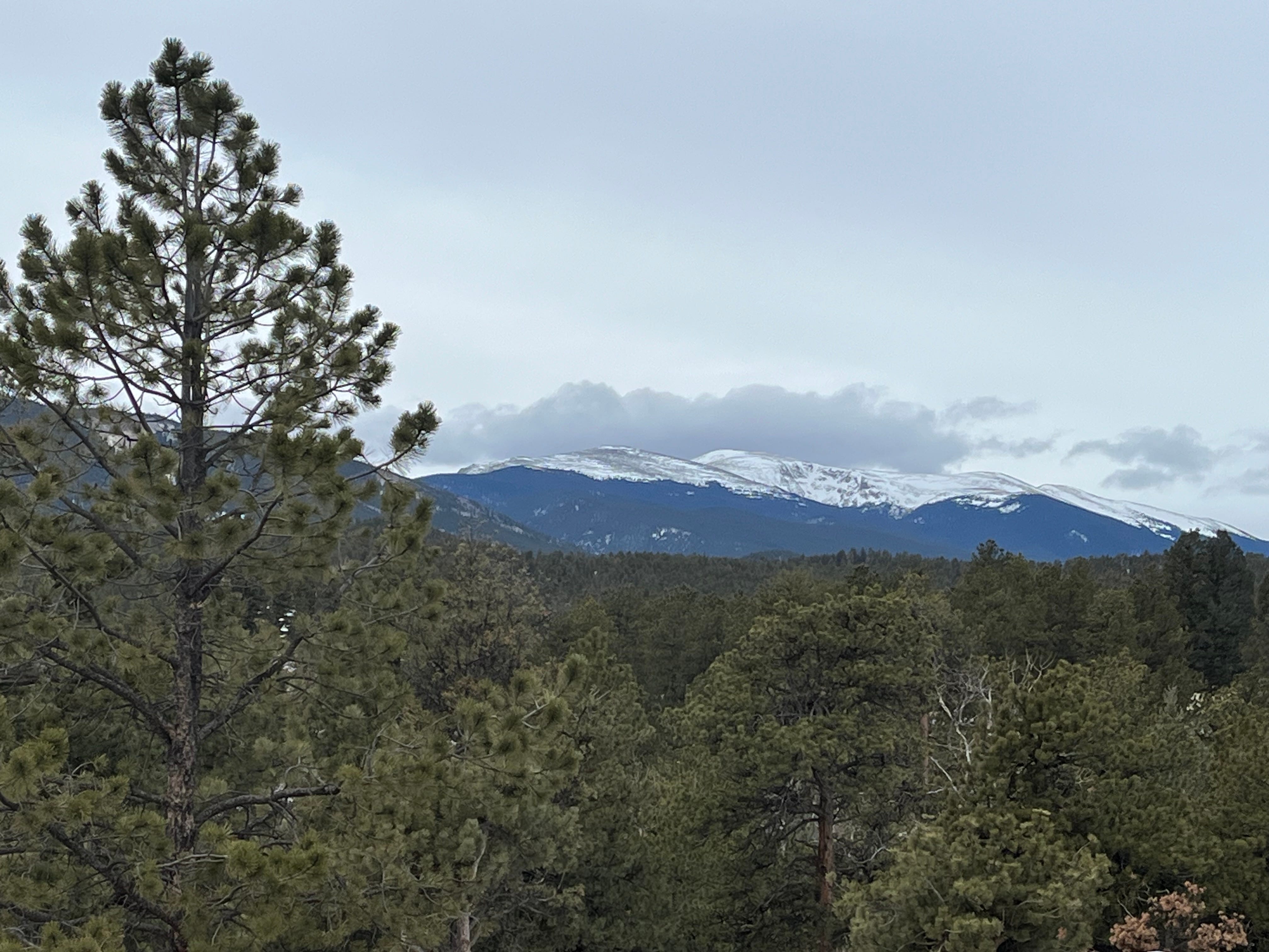 At one point, we had a fifteen minute break. I took my coffee and stepped outside. The mountains were snowy but not overly so, patches here and there. I walked down a little ways and just listened to the wind blowing through the trees. I had gotten a little overheated so I was out there in just my T-shirt and trousers — no jacket or hat. And it felt so wonderful. Brisk and blowy. The aspen trees were singing like the waves upon the ocean.